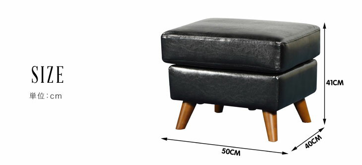 ▼ 同シリーズのソファもございます ▼ 仕様 サイズ 外寸:幅50×奥行40×高さ41cm ・ムードを演出するヴィンテージレザー風スツール ・適度な弾力性と高い耐久性を持つポケットコイル座面 ・シリコンフィル綿がたっぷり詰まった背もたれクッション 素材 張り地:PVC(エイジング加工) 座面:ポケットコイル、シリコンフィル 脚:ラバーウッド(ラッカー塗装) 重量約8kg 耐荷重約100kg カラーレトロブラック、レトロキャメル 梱包サイズ29×40×50cm 生産国中国 配送 【完成品(クッション・脚のみ取り付け)】 ※商品の寸法はロットによって、ご使用に差し支えのない程度の多少の誤差がある場合がございます。